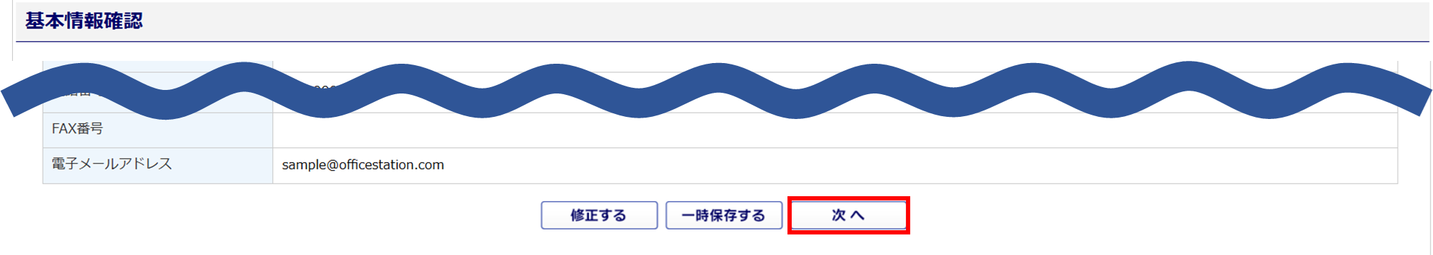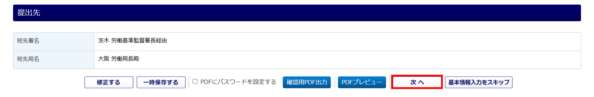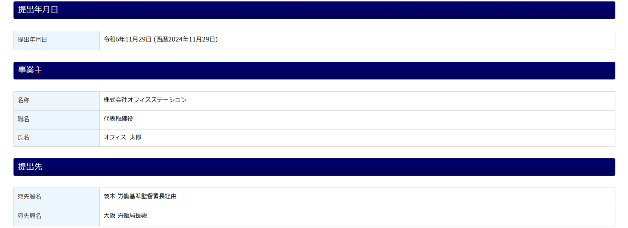 提出年月日、事業主、および提出先の内容を確認、必要に応じて修正します。