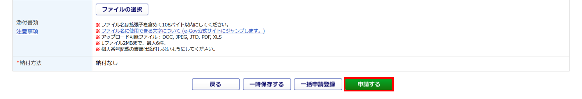 自動で添付されます。確認後、問題なければ再度[申請する]をクリックします。