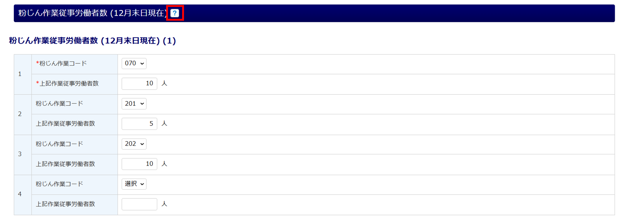 ※[?(はてな)]マークをクリックすると、粉じん作業コードの確認ができます。
