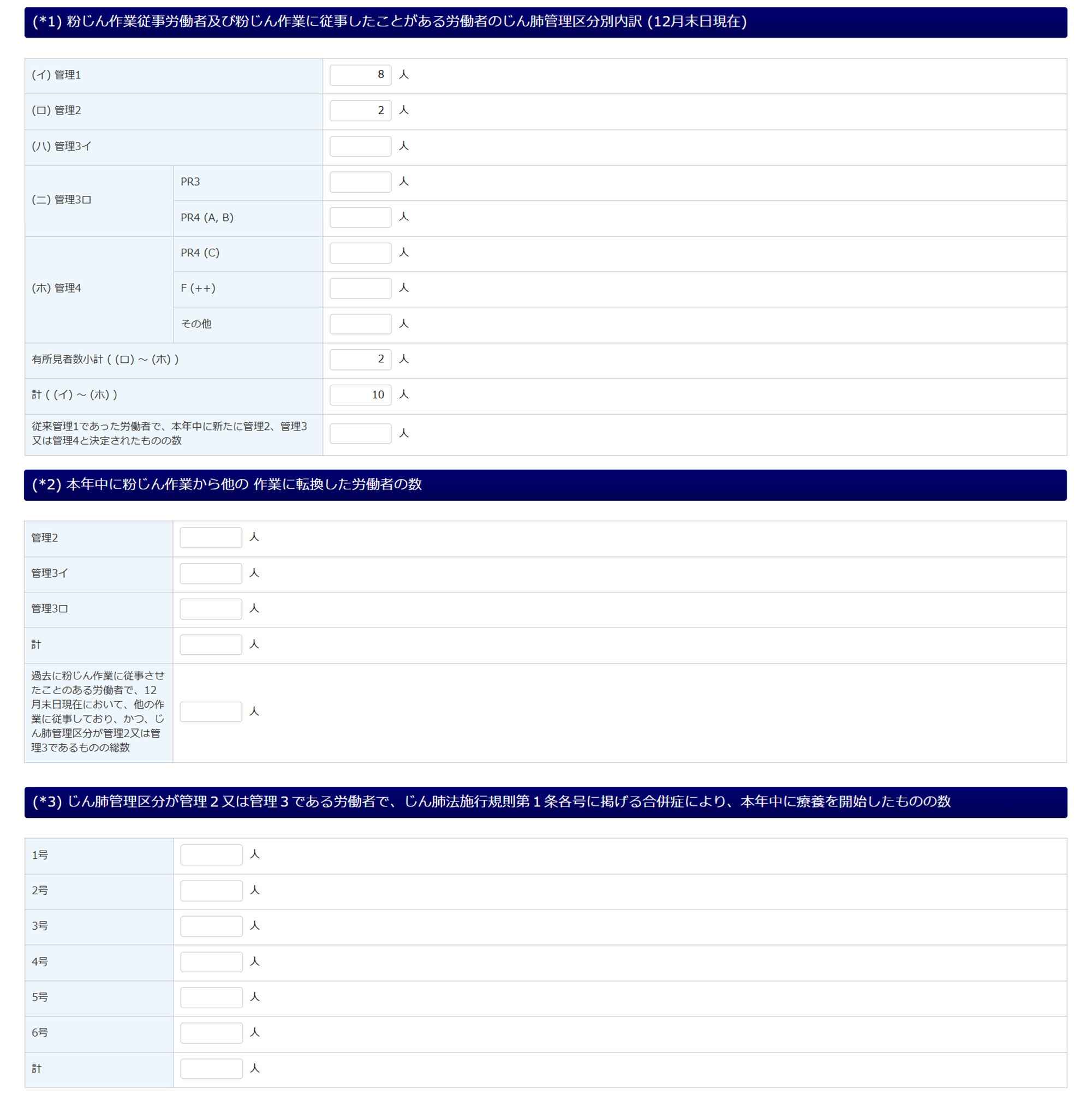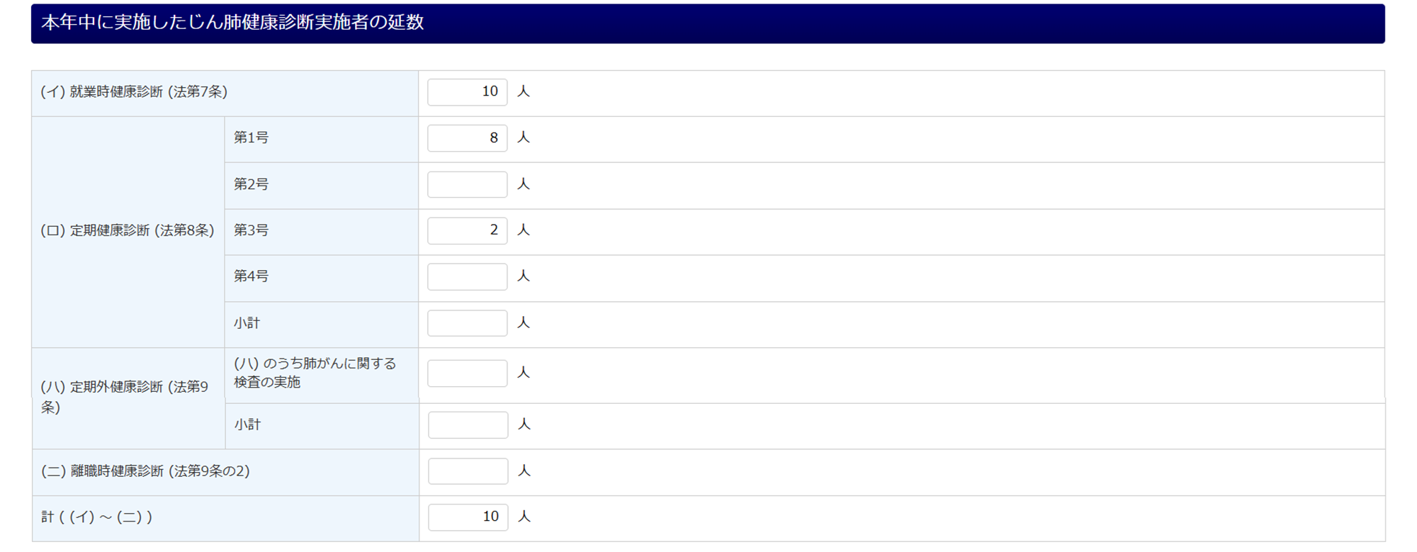 「本年中に実施したじん肺健康診断実施者の延数」を入力します。