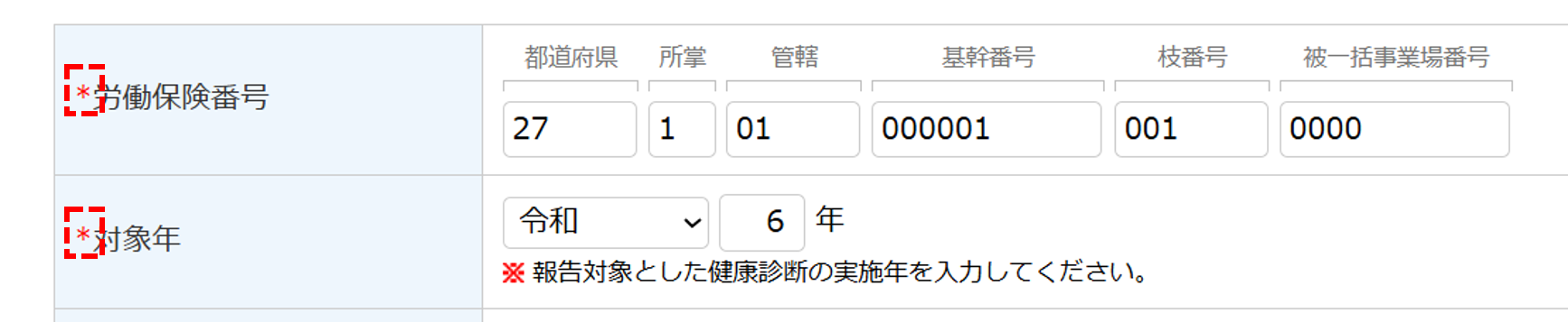 「*」がついている項目は必須入力です。未入力のまま申請することはできません。