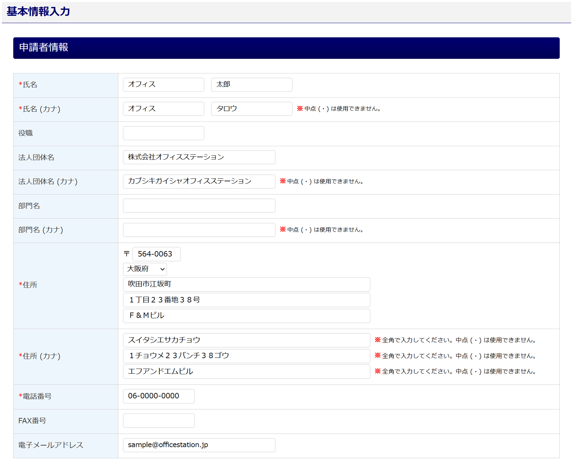 氏名 :(姓)・(名)合わせて最大30文字(スペースを含む)