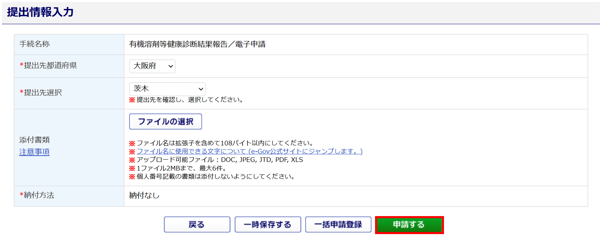 [申請する]をクリックすると、電子申請は完了です。