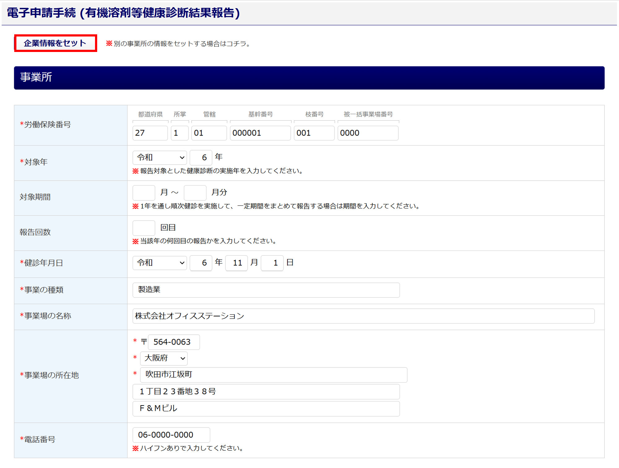 ※入力フォーム部分が黄色の項目は、[企業情報をセット]で選択した情報を引用してます。