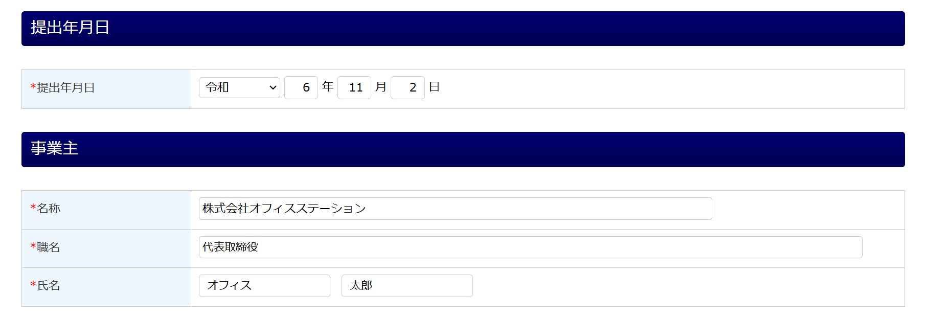 提出年月日・事業主