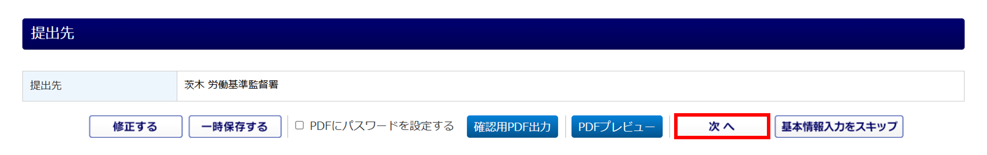提出先の情報等を設定します。