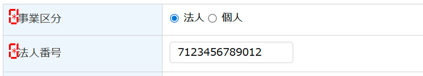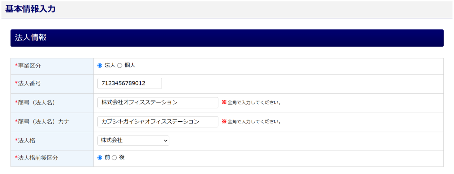 ※ : 「法人格」「法人格前後区分」項目が別で設けられてますが、法人格も含めてご入力ください。