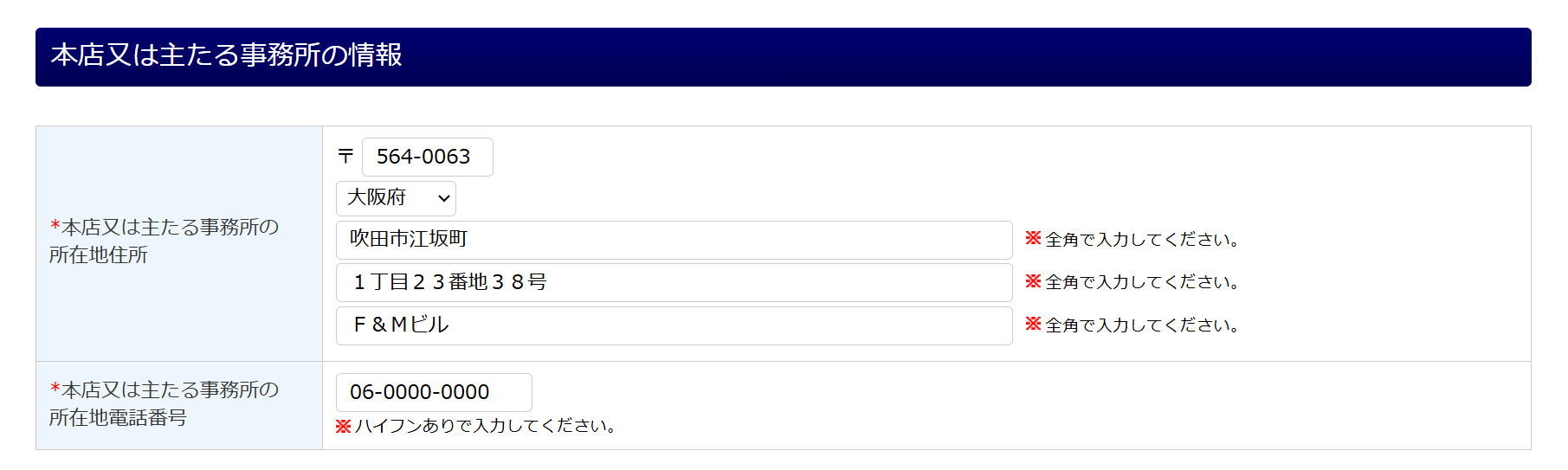 | 本店又は主たる事務所の所在地電話番号 | 電話番号 |