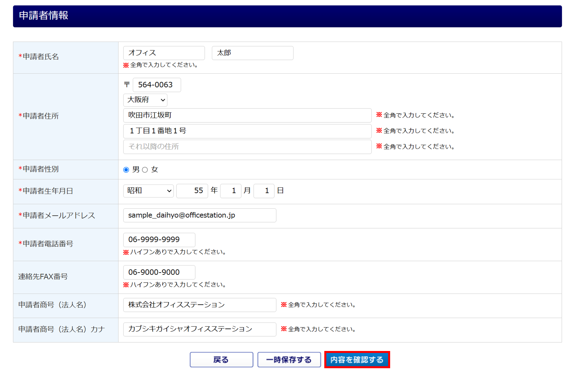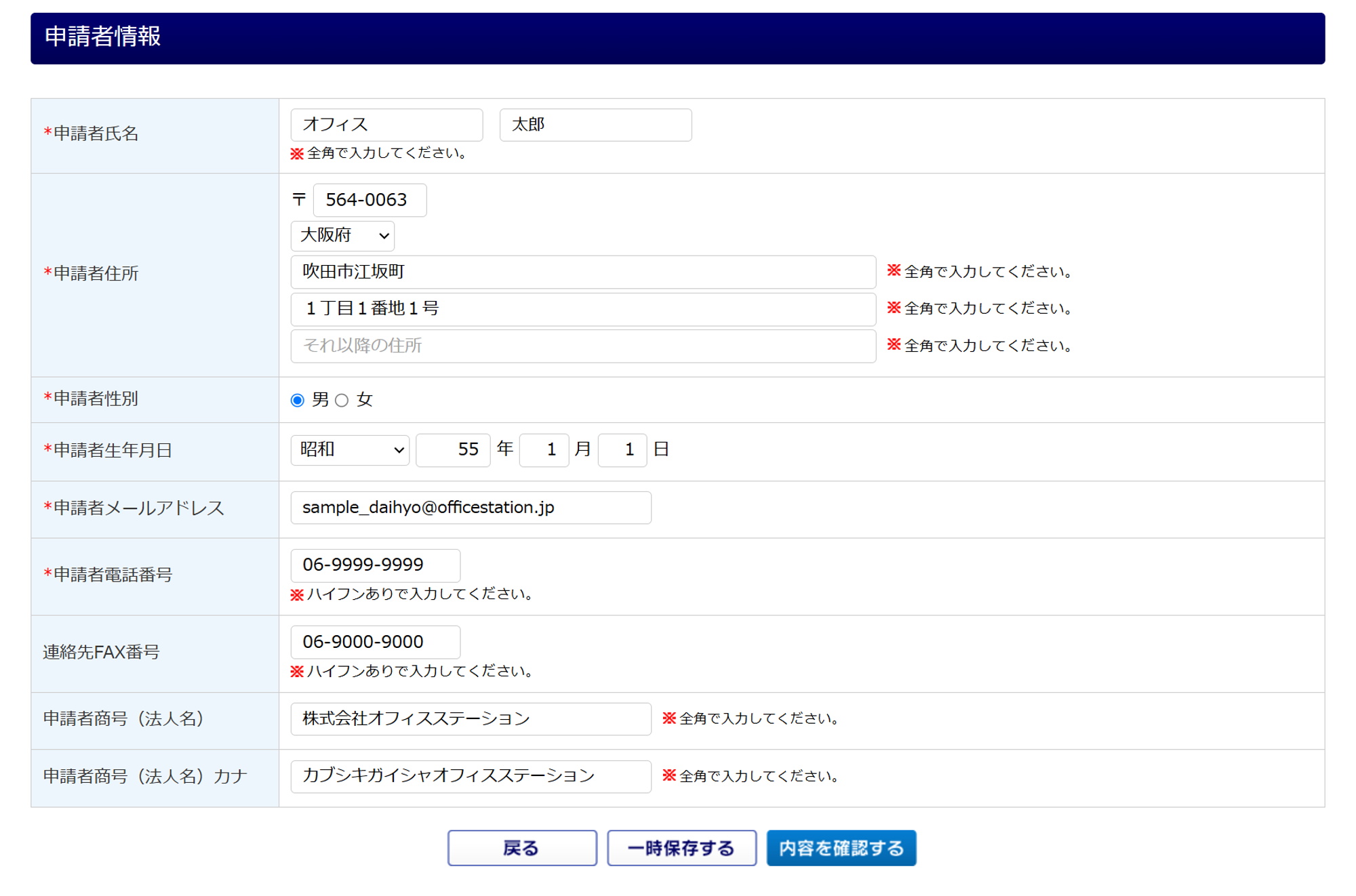 | 申請者生年月日 | 代表者生年月日 |