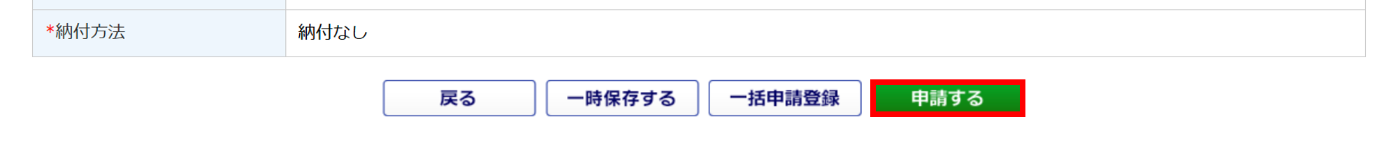 | 納付方法 | 自動的に「納付なし」と表示されます。 |