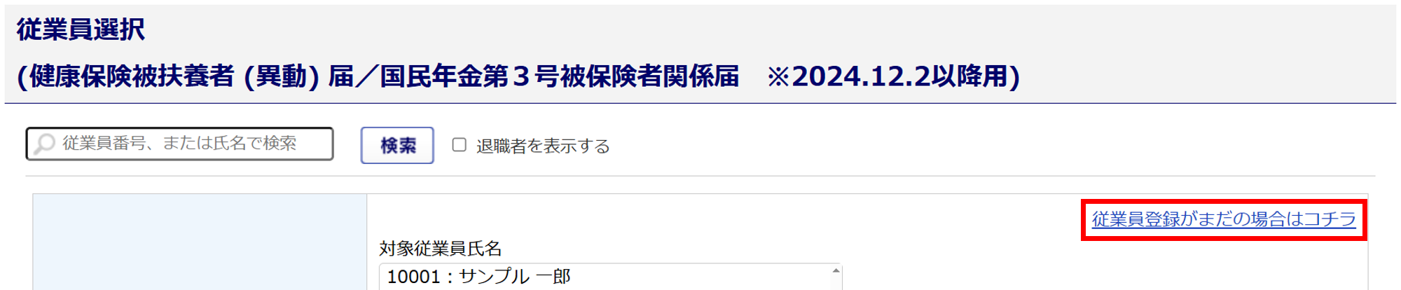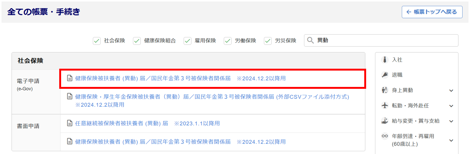 [健康保険被扶養者 (異動) 届/国民年金第3号被保険者関係届 ※2024.12.2以降用]をクリックします。