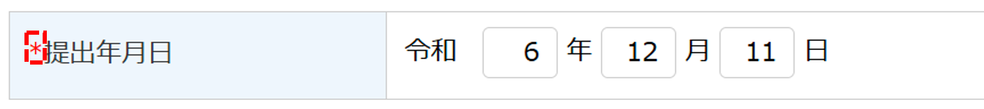 「提出年月日」項目を入力します。