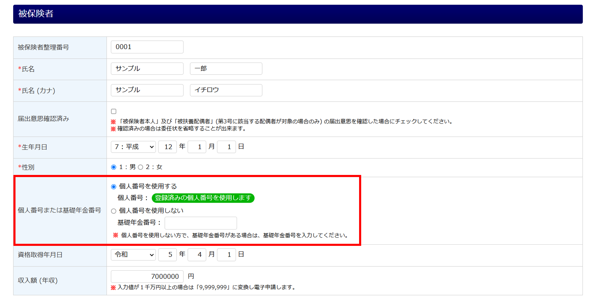 「個人番号または基礎年金番号」項目については、以下をご参照ください。