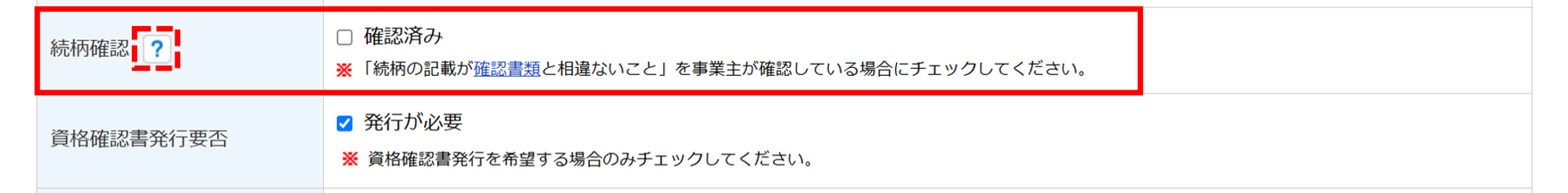 をクリックすると、「続柄確認」の詳細について確認できます。