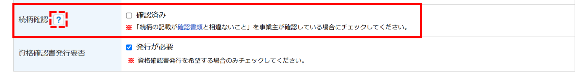 「続柄確認」について
