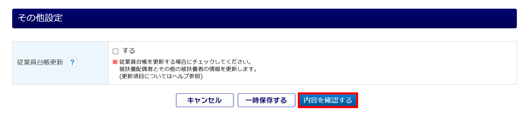 「する」にチェックをつけても、従業員台帳に登録されませんのでご注意ください。