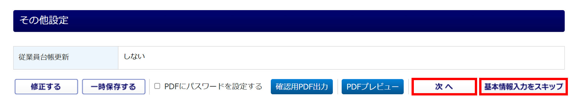 ※基本情報入力画面で不足項目がある場合、スキップボタンは表示されません。