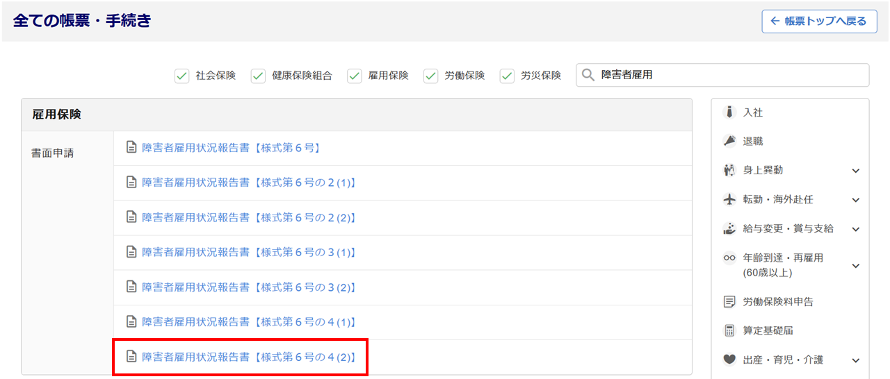 [障害者雇用状況報告書【様式第6号の4(2)】]をクリックします。