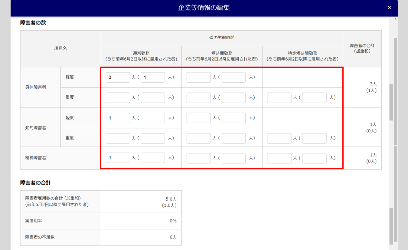 「障害者の数」欄を入力します。