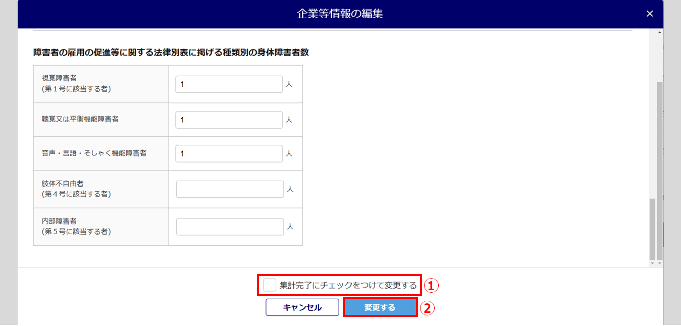 「集計完了にチェックをつけて変更する」について