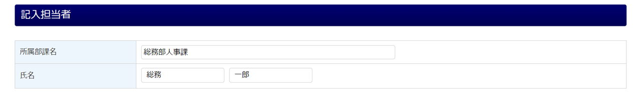 本報告書を作成している担当者の「所属部課名」と「氏名」を入力します。