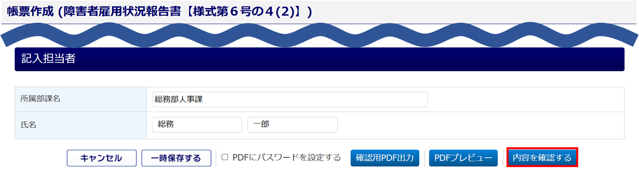 以上で、「障害者雇用状況報告書【様式第6号の4(2)】」の作成は完了です。