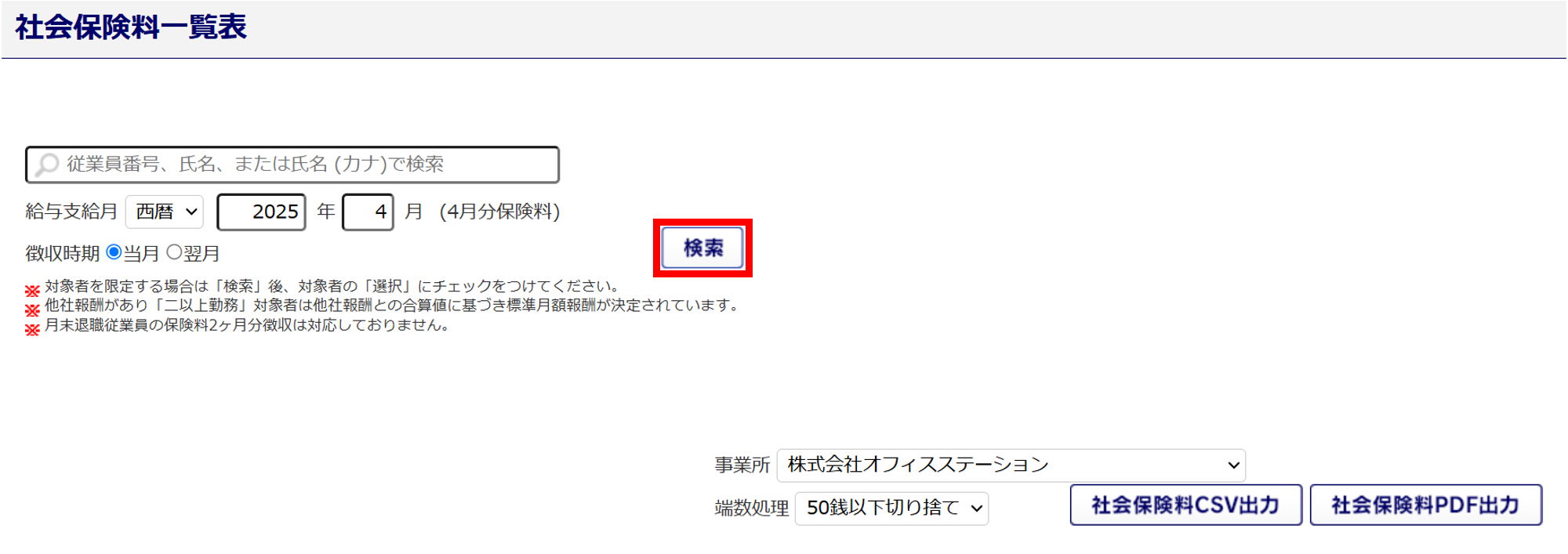 社会保険料一覧表の出力