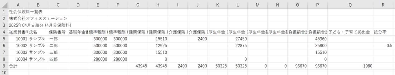 社会保険料一覧表CSVファイル サンプル
