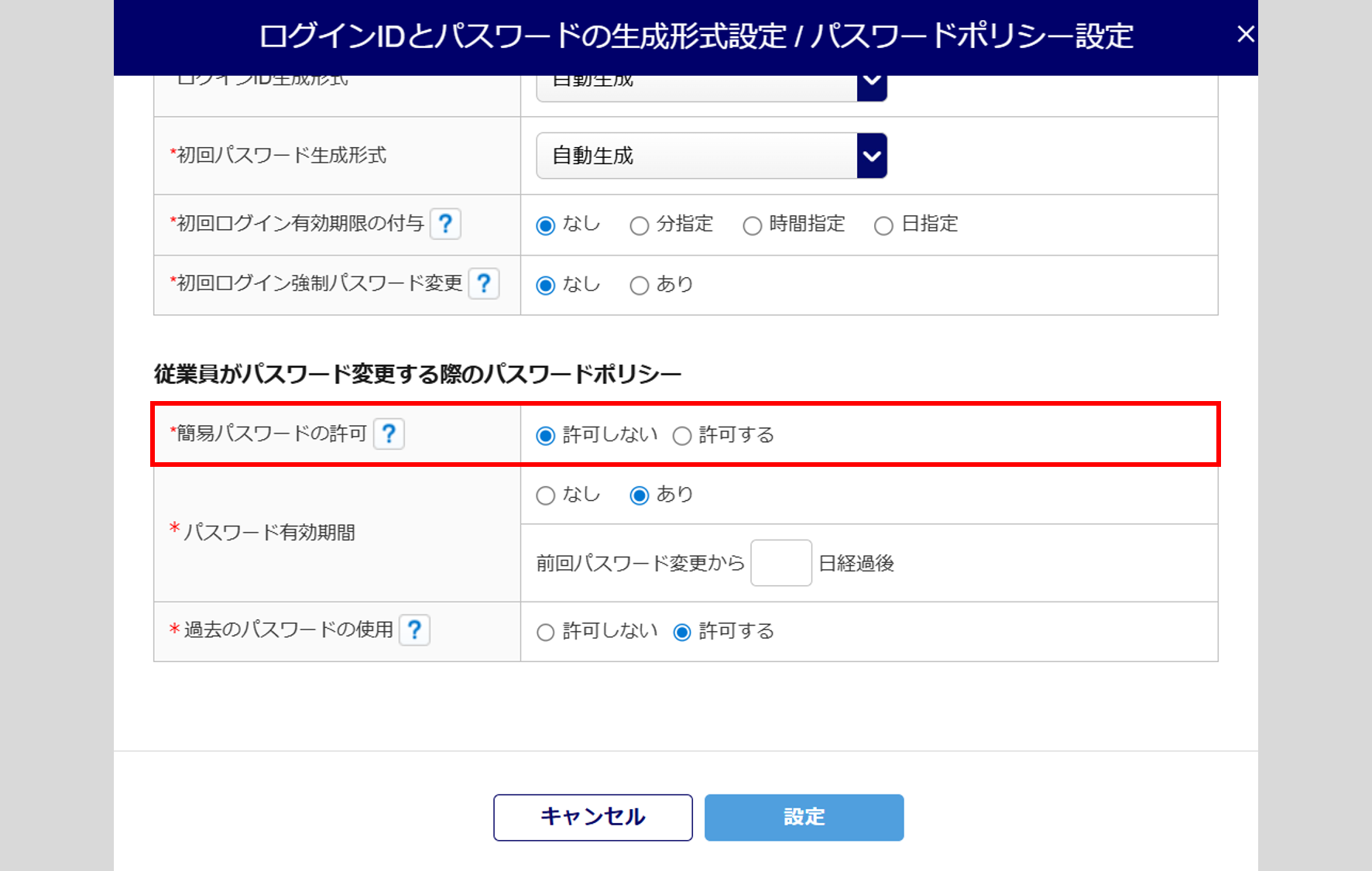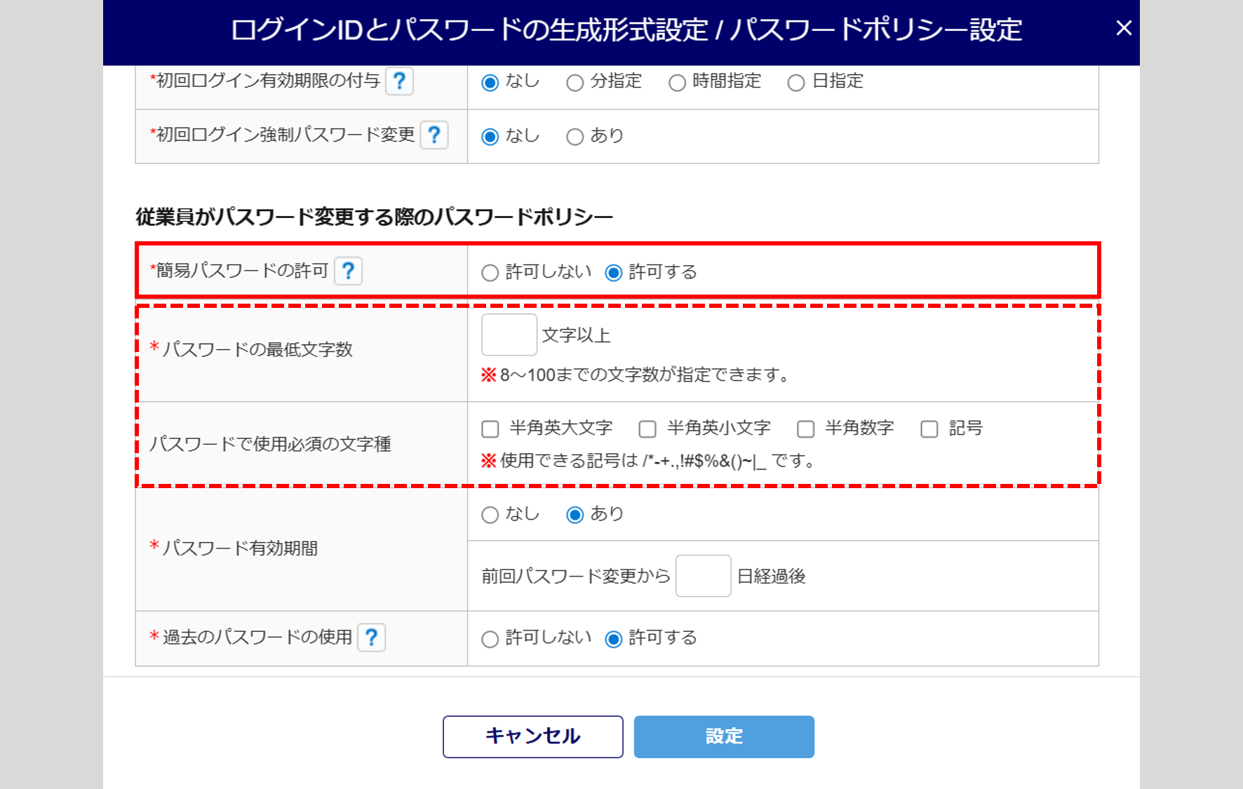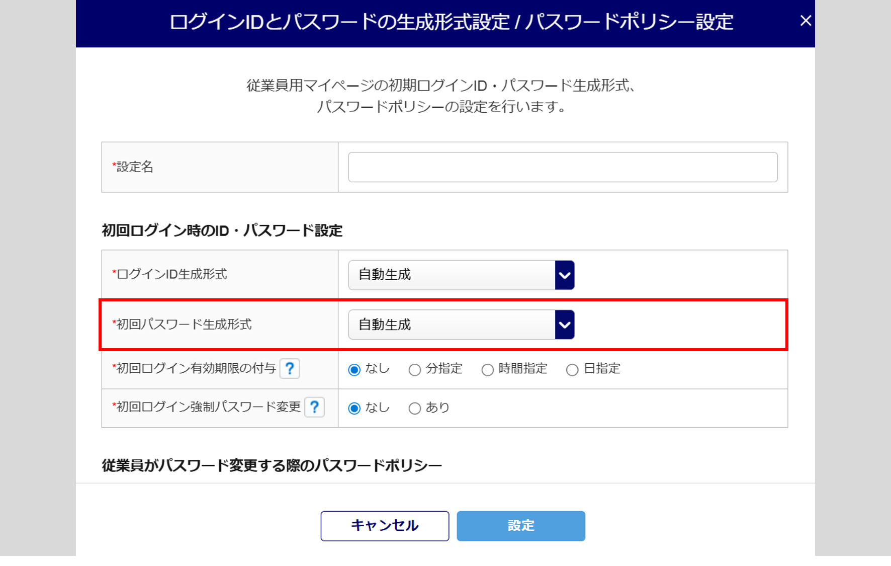 「従業員がパスワード変更時のパスワードポリシー」設定について