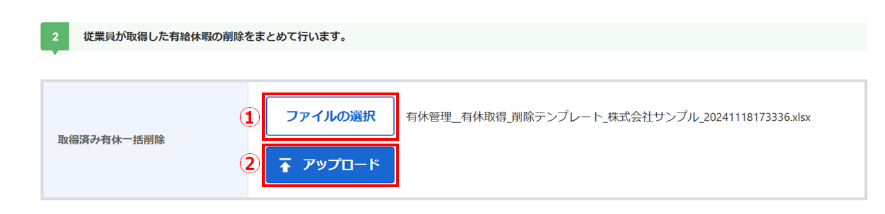 メニュー[有休取得]>[ファイル一括削除]をクリックします。