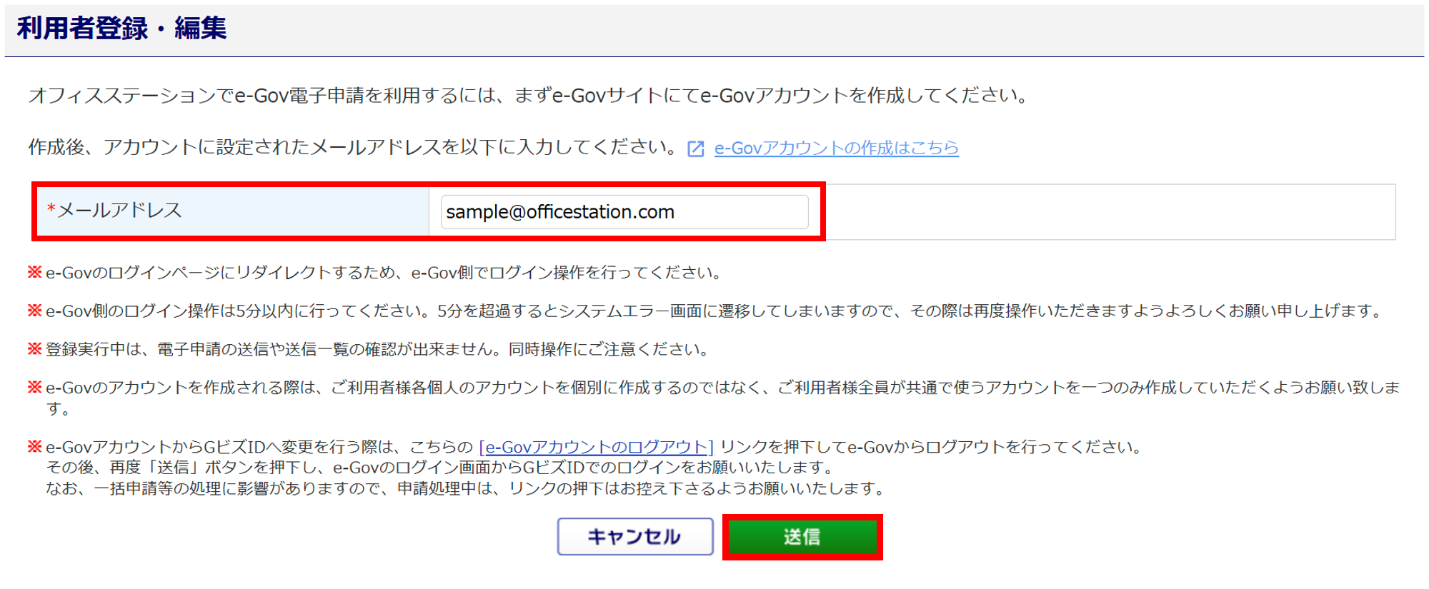 「メールアドレス」を確認し、[送信]をクリックします。