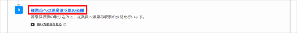 「年末調整の流れ」内[従業員への源泉徴収票の公開]をクリックします。