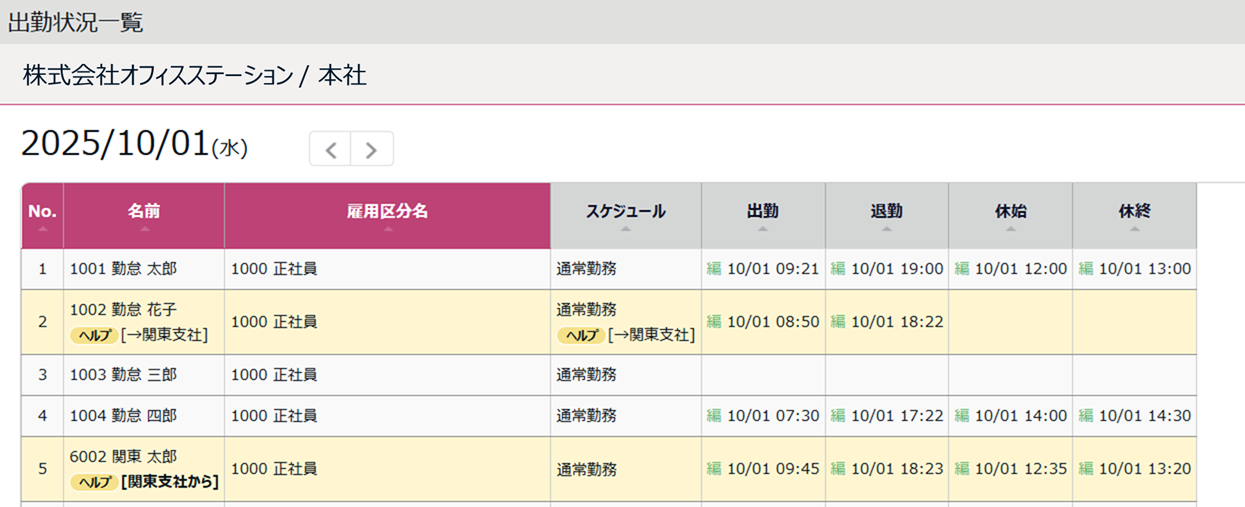 《タイムレコーダーの「出勤状況一覧」画面の改修》
