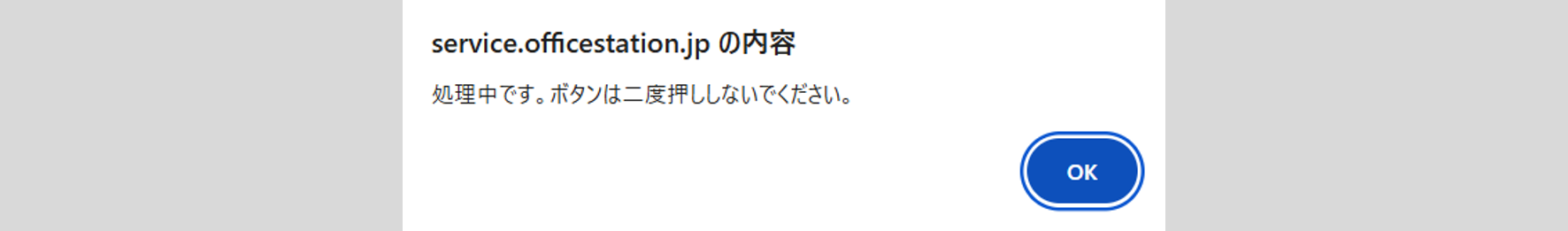 これまで、同じボタンを2回連続でクリックした際に表示されていた「処理中です。ボタンは二度押ししないでください。」という警告ダイアログを廃止しました。
