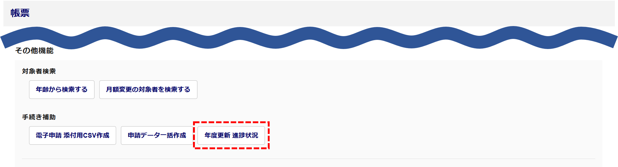・「進捗管理」画面から年度更新に関わる操作が可能になりました。