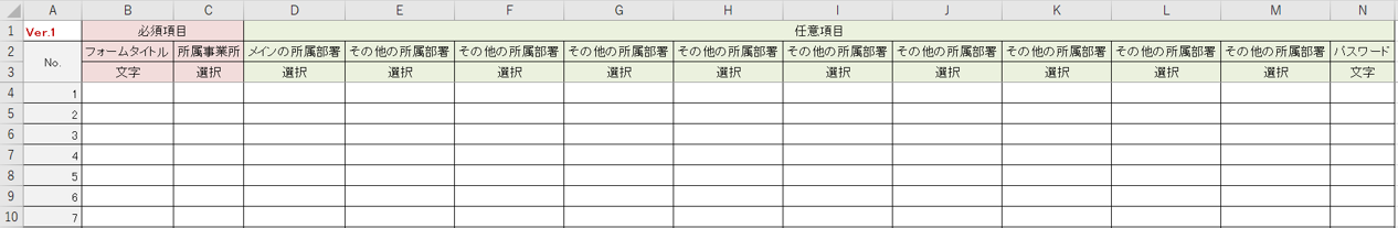 (「事前従業員登録フォームの一括作成フォーマット」Excel画面)