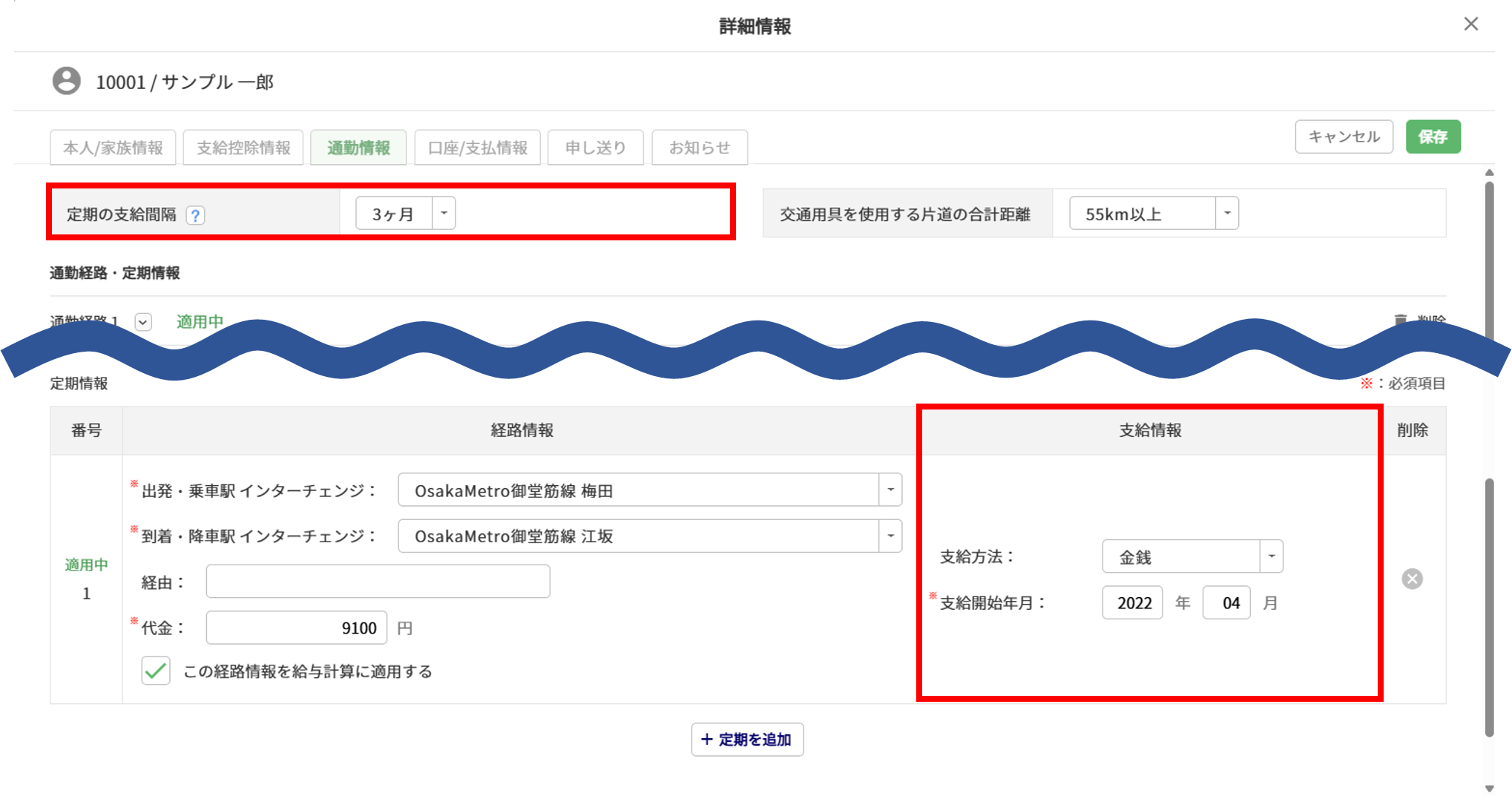 交通機関ごとに定期情報の支給間隔を設定できるよう、通勤情報に以下の改修をおこないました。