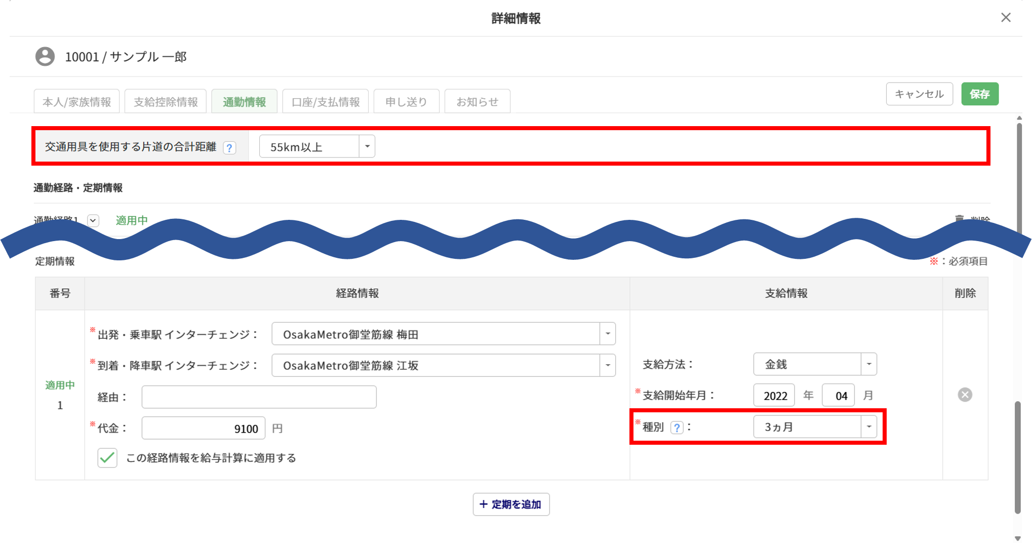 また、「定期の支給間隔」項目の選択肢「2ヶ月」定期を削除し、「種別」項目から「1カ月」「3カ月」「6カ月」「12カ月」および、「回数券」「その他」を選択できるようになりました。