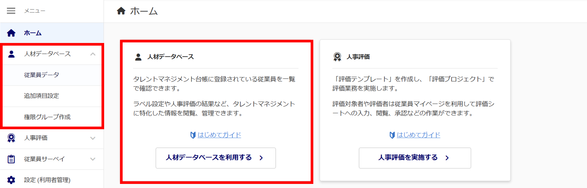 メニューおよびホーム画面に「人材データベース」を追加しました。