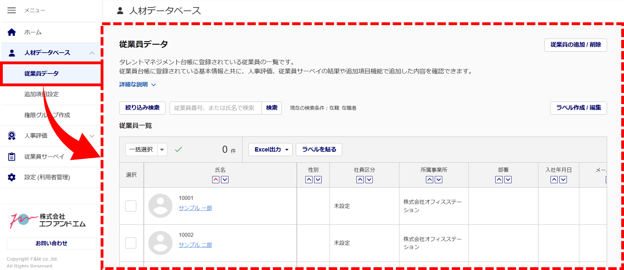 ※「人材データベース」画面では、従業員の追加や削除ができません。