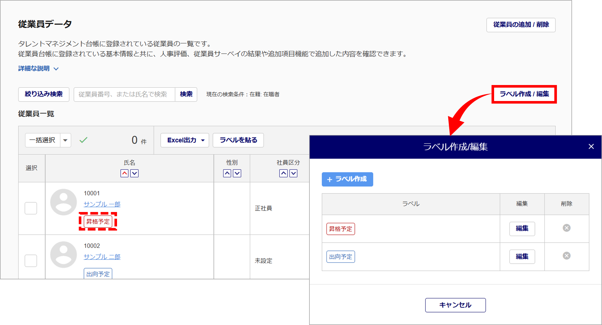 また、「従業員データ」画面では、従業員にラベル付けができる「ラベル作成」機能を追加し、より便利に従業員を検索できるようになりました。