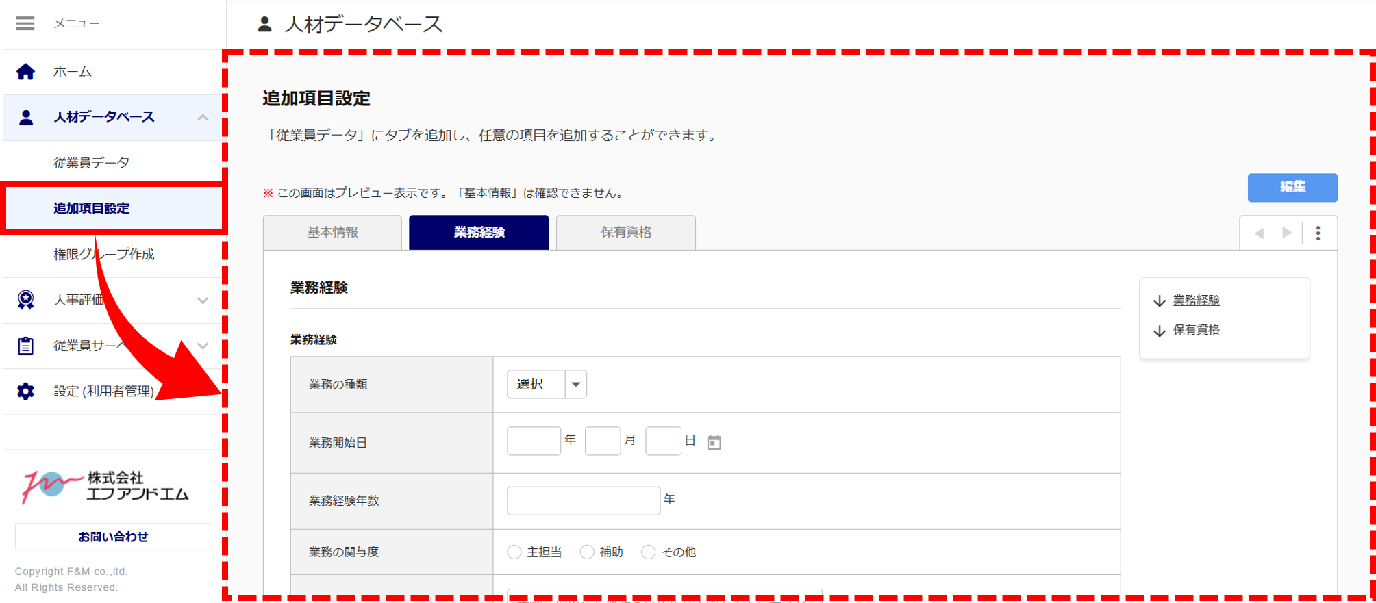「追加項目設定」では、「基本情報」に加えて、任意の項目を追加できます。