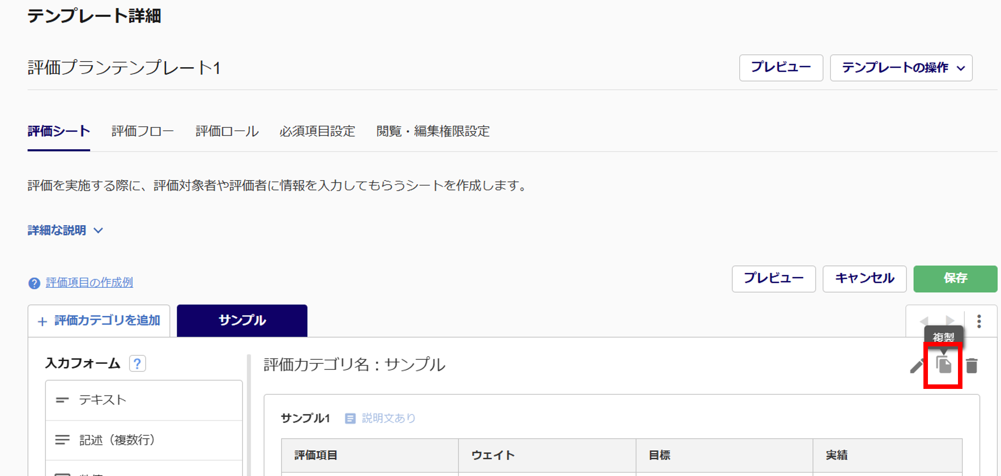 評価シートの「評価カテゴリ」および、「評価フォーム」に複製ボタンを追加しました。