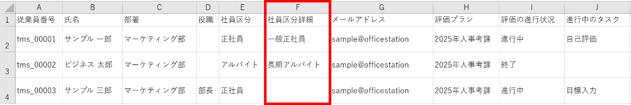 「社員区分詳細」項目に出力