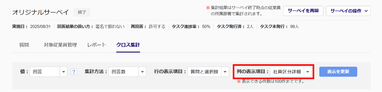 <サーベイ詳細「クロス集計」タブ>