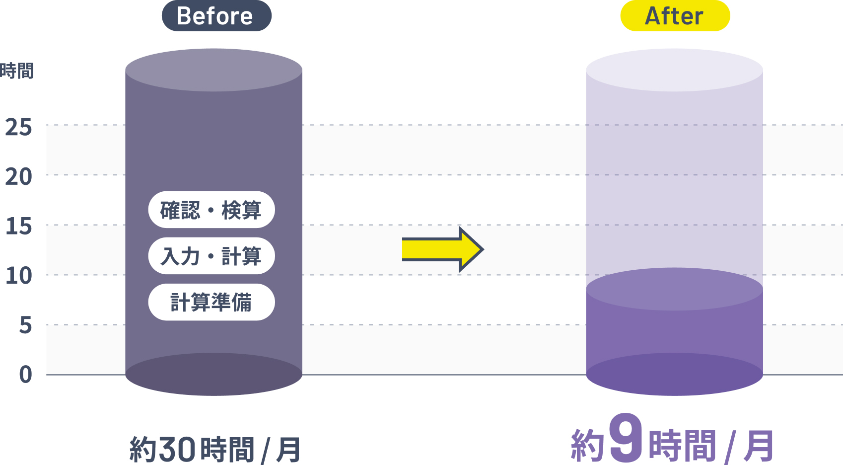 毎月の給与明細発行に伴う『計算準備』『入力・計算』『確認・検算』をすべて自動化。
